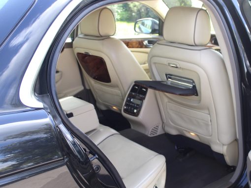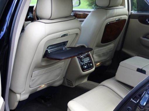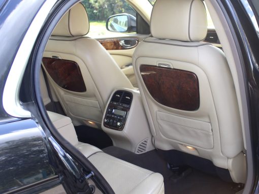 2008/08 Jaguar XJ 4.2 “Super V8” LWB Supercharged Sovereign, 400BHP X358 Final Edition, Imported Vehicle and Totally Rust Free, Only 59800 miles From New, With Full Documented Service History, ULEZ FREE, 2 Owners With New Mot, Minight Black Metallic, With Full Light Cream Soft Leather With Mocca Piping, Full Walnut Wood Pack, Factory Touch Screen Satellite Navigation, Dual Climate Control, Air Conditioning, Rear Entertainment Package, Rear Walnut Picnic Tables, Bi-Xenon Headlamps, Brembo Brakes, Heated Walnut Steering Wheel, Front and Rear Parking Control, Electric Rear Blinds and Side Blinds, Voice Activation, Adaptive Cruise Control, 16 Way Electric Memory Seats, Heated and Cooled Memory Ventilated Front And Rear Seats, 20" Callisto Multi Spoke Alloy Wheels, Electric Adjustable Steering Column, Electric Heated Folding Mirrors, CD System, Plus Many Other Extras, ULEZ FREE. Stunning Unmarked Example Throughout. 3 Month Warranty Included.