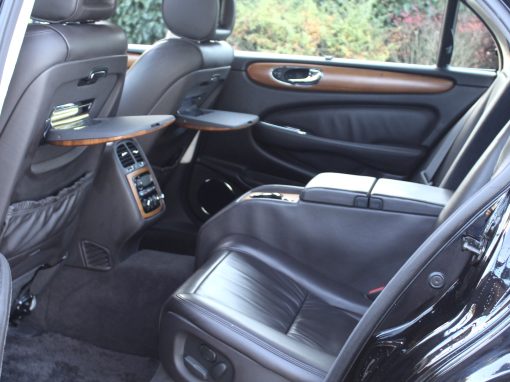 A Collectors Dream! We are delighted to offer this Extremely Rare, Beautiful XJ 4.2 "Super V8" Supercharged LWB "Portfolio", 400bhp Saloon. Limited Edition with only 300 produced globally, Inspired by the Concept 8 Show Car. All-Aluminium Monocoque Lightweight Body, With Self-Levelling Air Suspension (CATS). Only 23000 Miles From New With A Full Documented Service History, Imported From Japan, and Totally Rust Free, ULEZ FREE, With Long Mot. Presented in Stunning Black Cherry Metallic With Full Soft Charcoal Rouche Leather Seats, Electric Tilt and Slide Glass Sunroof, Heated Memory Leather Seats, Burl Walnut Wood Pack, Rear Picnic Tables, Factory Touch Screen Satellite Navigation, Colour Reverse Camera, Luxury Alcantara Suede Headlining, Rear DVD Screens, Dual Climate Control, Double Glazed Glass, Chrome Mirror Cappings, Chrome Side Wing Vents, Dual Air Conditioning, Xenon Headlamps, Front and Rear Parking Control, Electric Rear Blinds and Side Blinds, Cruise Control, 16 Way Electric Memory Seats, Electric Heated Memory Front And Rear Seats, 20″ "Callisto" Alloy Wheels, Chrome Mirror Backs, Chrome Headlamp Bezels and Enhanced Chrome Front Grilles, Portfolio Aluminium Faux Side Vents, Electric Adjustable Steering Column and Pedals, Electric Heated Folding Mirrors, CD System, Plus Many Other Extras, ULEZ FREE. Stunning Unmarked Example Throughout. 3 Month Warranty Included.